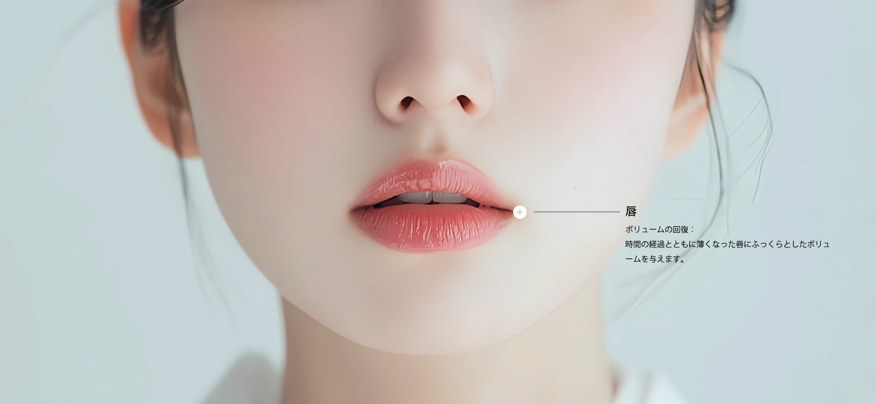 唇にボリューム、立体感、潤いを取り戻すために作られた当院の高度なリップエンハンスメントで、あなたの笑顔に活力を与えましょう。当院のアプローチは、薄くなった唇、縦ジワ、不均一な輪郭などの一般的な問題を対象としています。高品質のヒアルロン酸(HA)フィラーを使用することで、唇の形と膨らみを強化し、快適さを損なうことなく自然で若々しい見た目を提供します。私たちの目標は、あなたの顔立ちを引き立て、全体的な外観を向上させる、美しくはっきりとした唇を作ることです。